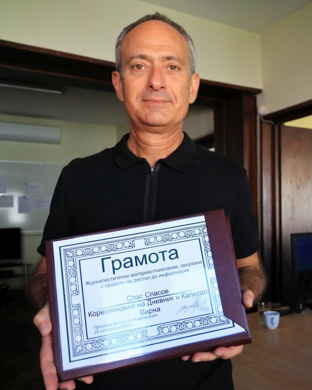 Spas Spassov from “Dnevnik” online newspaper was elected by the jury to be the rexcipient of the honorary diploma for his in-depth investigation into the case of the pollution of Varna Lake caused by a leaking wastewater pipeline.