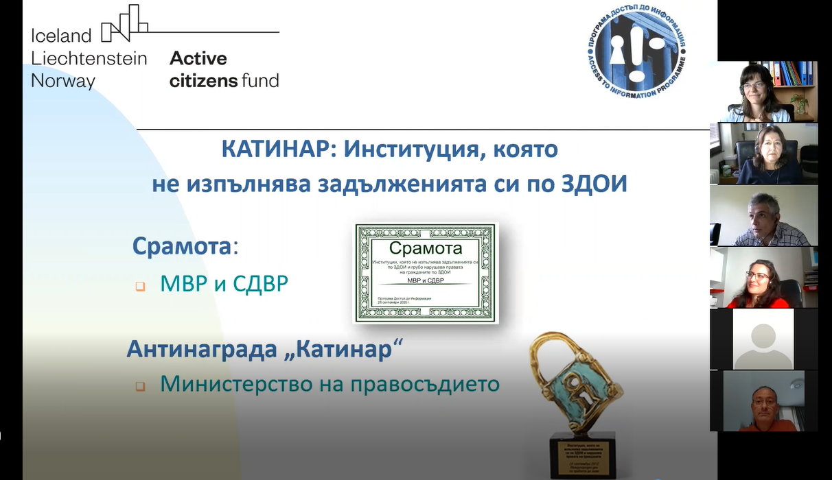 The “Padlock” anti-award went to the Ministry of Justice for refusing to comply with a court decision under which it was obliged to provide access to the memos from the meetings held between Bulgarian judiciary and executive representatives with European Commission (EC) officials.