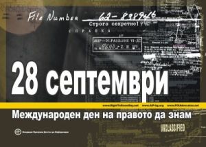 28.09.2004 г. На 28 септември, 2004 г. на прес-конференция в зала "Мати" на НДК от 17:00 ч. бяха представени номинациите и обявени наградите по повод второто отбелязване на Международния ден на правото да знам. 31.07.2004 г. Можете да изтеглите плаката, посветен на Международния ден на правото на знам през 2004 г. 24.07.2004 г. 1 авгус т - начало на номинирането |
