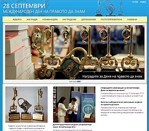 28.09.2013 г. За единадесети път Програма Достъп до Информация връчи годишните награди за принос в областта на свободата на информация по случай Международния ден на правото да знам. Церемонията отново бе открита с песента "Дишай", посветена на празника, който се проведе на 28 септември 2013 - от 12.30 ч. в Пресклуба на БТА. Наградите за 2013 година бяха връчени в шест категории. А журито трябваше да избере победителите от 39 получени номинации. 24.09.2013 г. За единадесети път Програма Достъп до Информация (ПДИ) ще връчи годишни награди за принос в областта на свободата на информация. Така ПДИ отбелязва 28 септември – Международният Ден на правото да знам.Тази година 39 номинирани се състезават в шест категории - четири позитивни награди „Златен ключ” и две антинагради – „Катинар” и „Вързан ключ”. Номинациите и мотивите към тях може да видите в секцията: http://www.righttoknowday.net/nominations/2013/. 23.09.2013 г. Програма Достъп до Информация ще проведе Единадесета церемония по връчване на награди за принос в областта на свободата на информация по повод Международния ден на правото да знам. Бъдете наши гости на 28 септември 2013 г., събота от 12.30 ч. в националния пресклуб на БТА: София, бул. „Цариградско шосе” 49. 17.09.2013 г. Поради големия интерес, на първата си среща журито за Деня на правото да знам, реши да удължи срока за номинации за Деня на правото да знам. Всеки може да номинира своя фаворит за награда или анти-награда в шестте категории за 2013 на обновената страница www.righttoknowday.net/nominations/2013/ до 20 септември (петък). Единадесетата церемония по случай Международния Ден на правото да знам ще се проведе на 28 септември 2013 от 12:30 ч. в Пресклуба на БТА (София, бул. "Цариградско шосе" 49). 16.07.2013 г. За единадесети път Програма Достъп до Информация ще връчи годишните награди за принос в областта на свободата на информацията. 08.04.2013 г. Новият дизайн и функционалност улесняват набирането на номинации за наградите за 28 септември. 28.03.2013 г. Програма Достъп до Информация стартира набирането на номинации в шестте категории за наградите по повод Международния ден на правото да знам. Наградените ще бъдат избрани от специално жури. Наградите ще бъдат връчени на специална церемония, която ПДИ ще проведе на 28 септември 2013 г. |