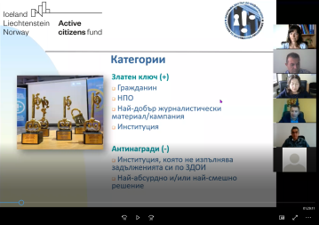 29.09.2020 г. Програма Достъп до информация връчи годишните си награди за принос в областта на свободата на информация по случай Международния ден на правото да знам. Церемонията се проведе за първи път онлайн, с участието на 60 граждани, журналисти, представители на граждански организации и на държавни институции. ➨ 17.09.2020 г. За 18-и път Програма Достъп до Информация (ПДИ) ще връчи годишни награди за принос в областта на свободата на информация. Така ПДИ отбелязва 28 септември – Международния ден на правото да знам. 01.09.2020 г. ПДИ Ви кани на 28 септември 2020 г., понеделник, от 15.00 часа на онлайн церемонияпо връчването на наградите за Междунаордния ден на правото да знам. Тя ще се проведе в платформата Zoom - заявете присъствие с регистрация на следния линк: https://bit.ly/2EMrTtJ 10.07.2020 г. ЮНЕСКО обяви „Достъп до информация във времена на криза“ като тема на Международния ден на всеобщия достъп до информация (IDUAI), който се чества всяка година на 28 септември. 07.07.2020 г. Програма Достъп до информация стартира набирането на номинации в шестте категории за наградите по повод Международния ден на правото да знам. Електронната форма към всяка категория и съответните критерии за номинации са достъпни на специалната страница за 28 септември – Международния ден на правото да знам: http://www.righttoknowday.net/nominations/. |